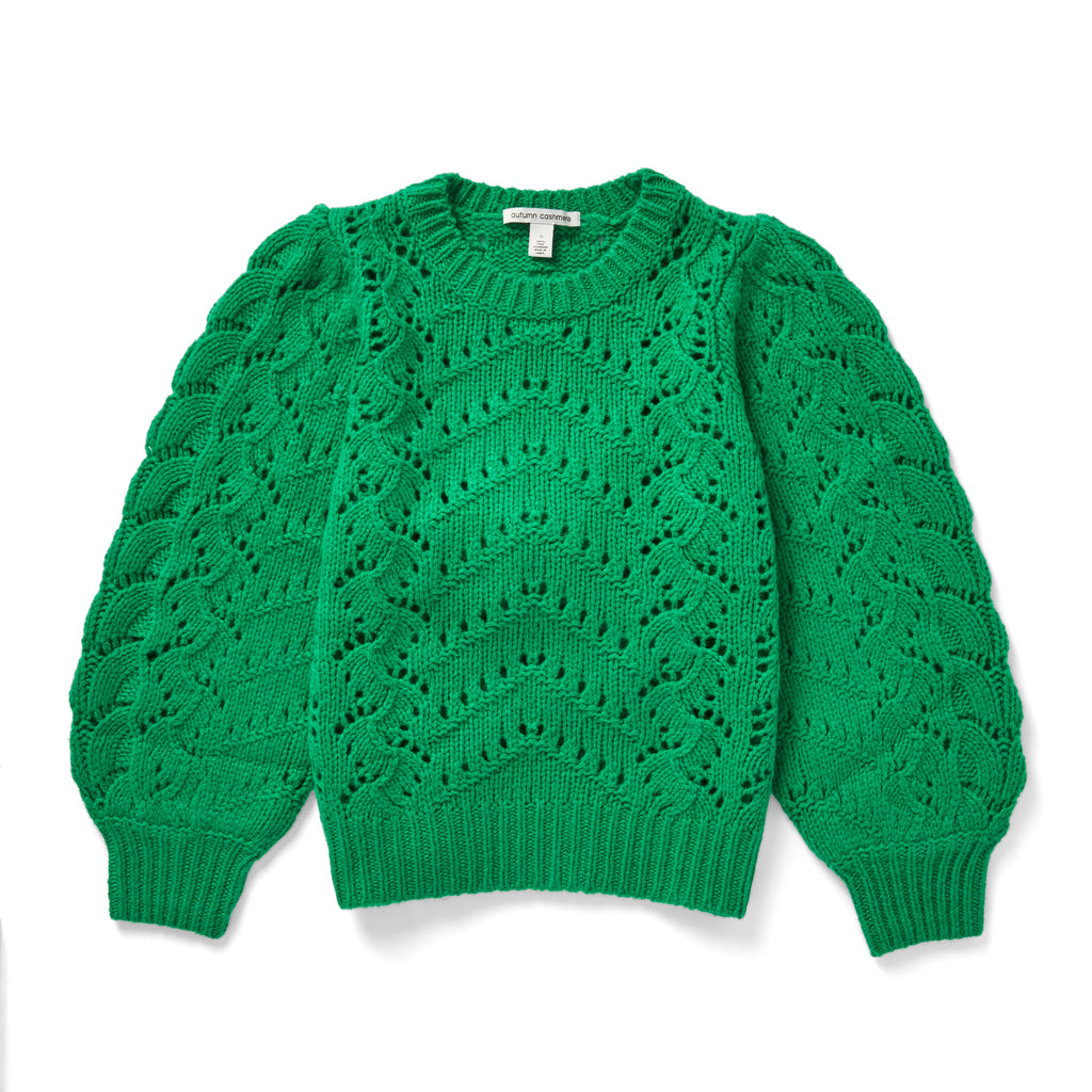 Puff Sleeve Fancy Pointelle Crew in Green